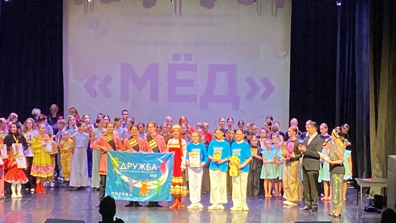 8 ноября в большом 2025 года зале центра творчества им. А.В. Косарева прошел Российский конкурс искусств «МЁД», в котором принял участие Московский городской творческий коллектив хореографический ансамбль Дружба с танцами: «День рождения Айболита», «Пастушок», «Фарандола» и танцем Курской области «Тимоня».